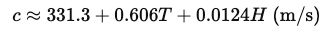 音速 ccc は温度 TTT と湿度 HHH に依存し、わずかな変化でも測定結果に影響します。